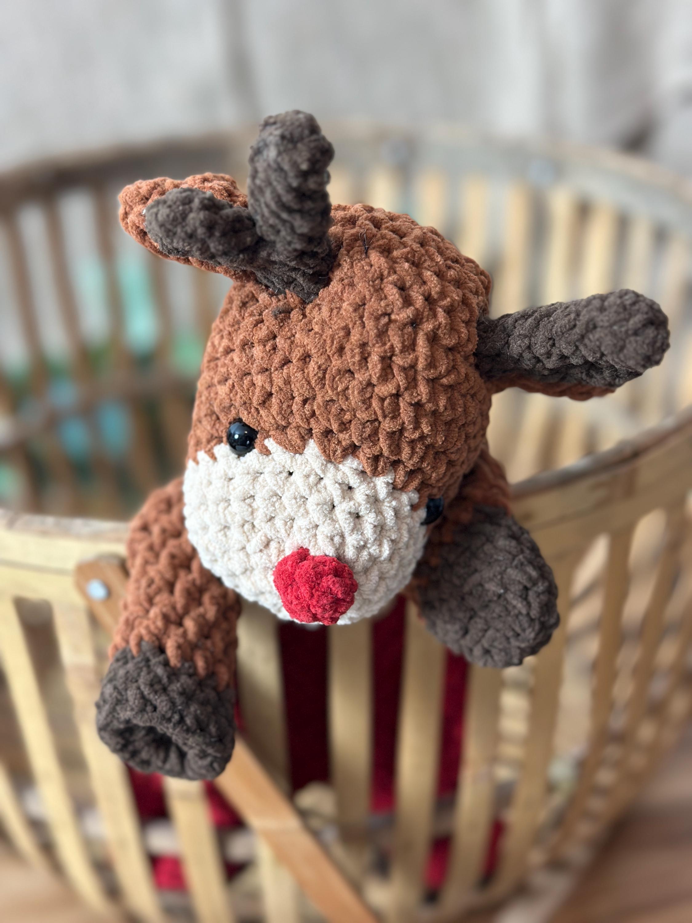 Rudolf Snuggler Crochet Pattern – DIY Amigurumi Reindeer – Instant Download – Cute Handmade Holiday Craft