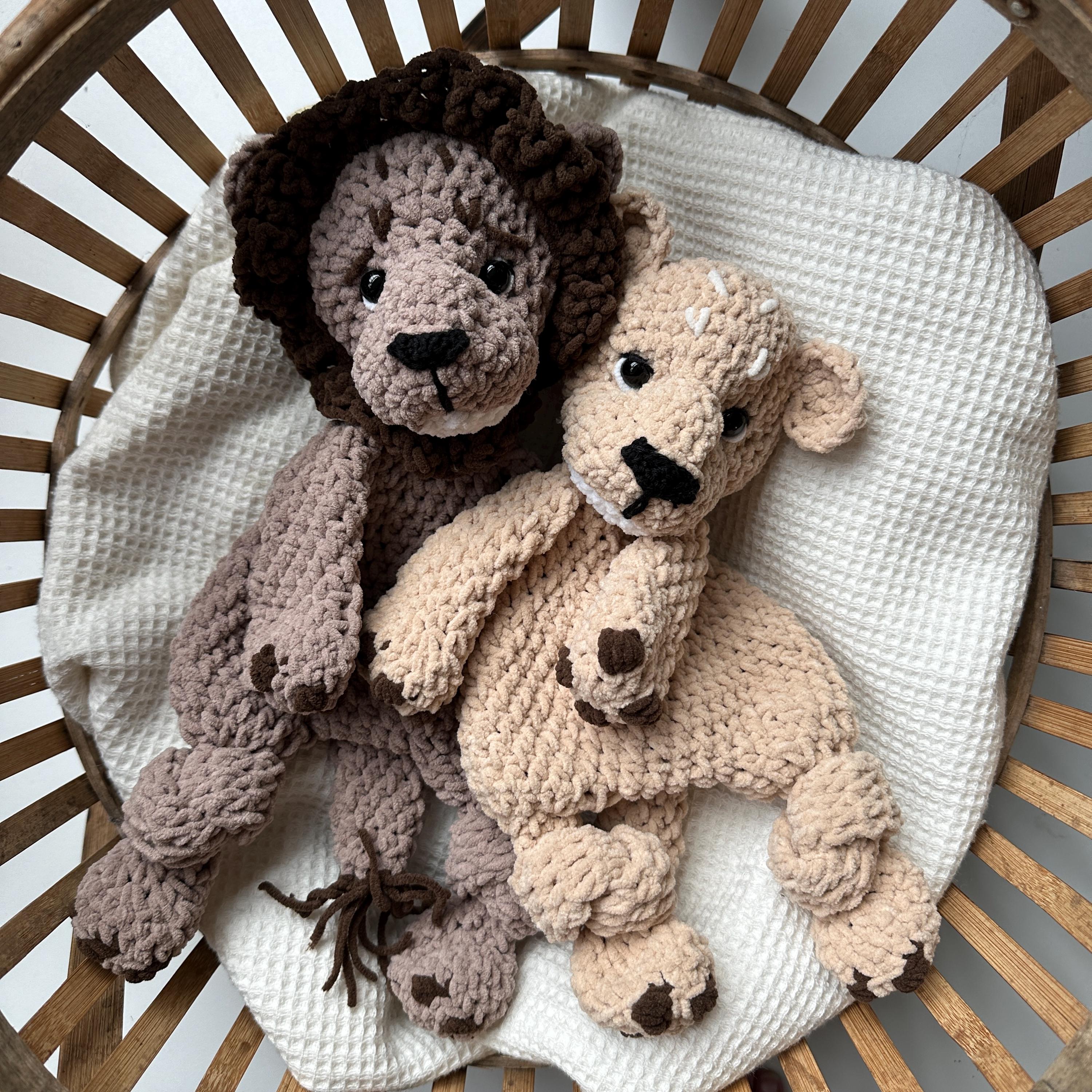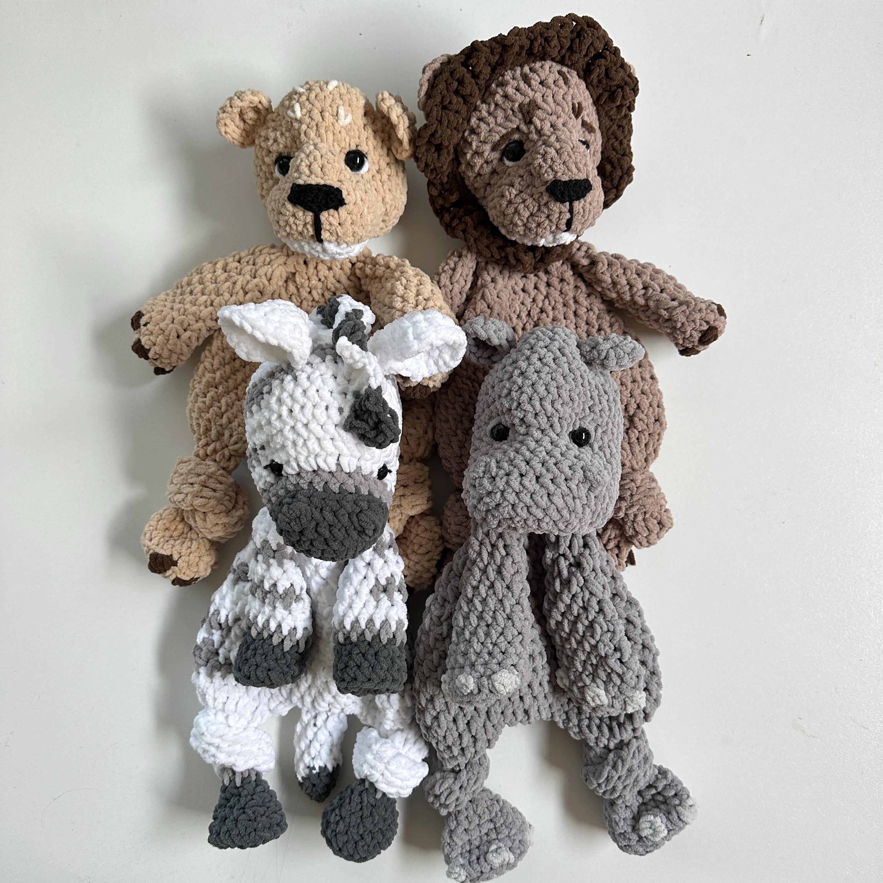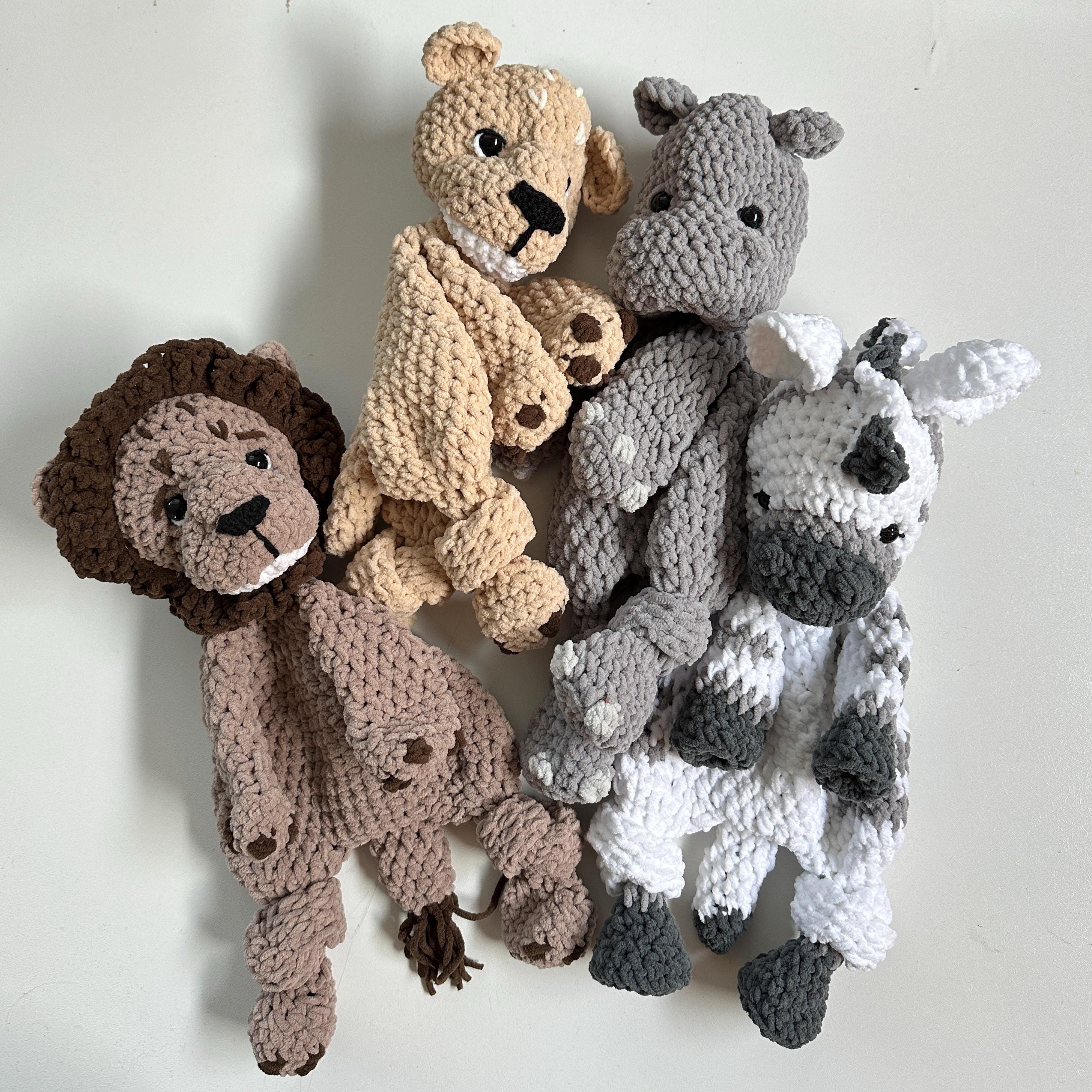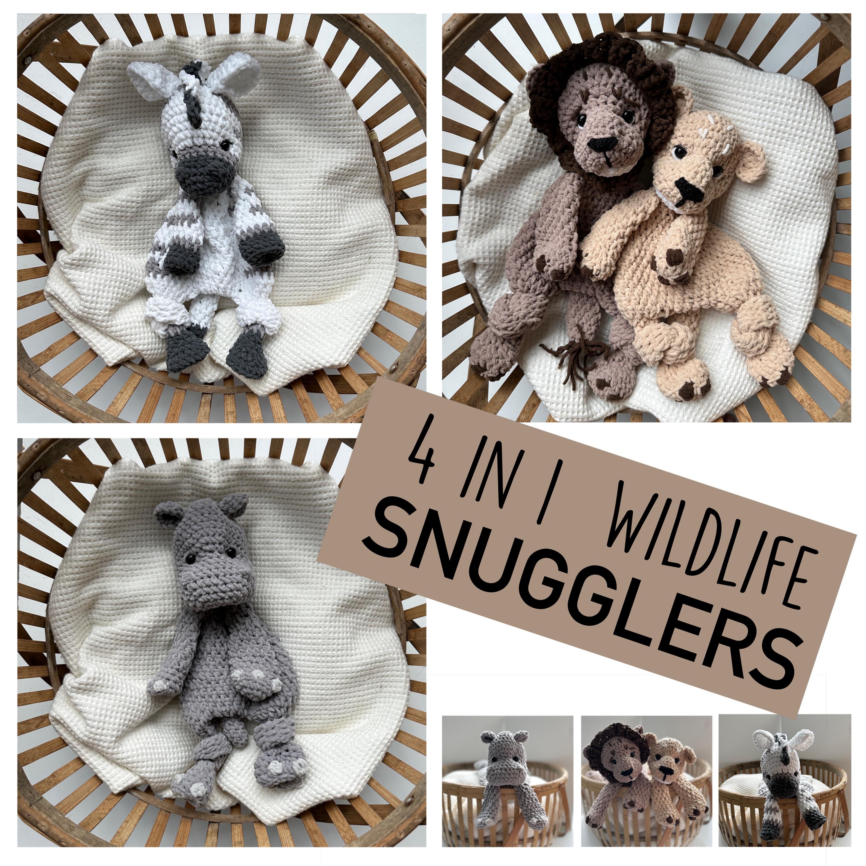 Charmed Bundle of 4 Wildlife Snuggler patterns, the crochet patterns incuding the Hippo, Zebra, and 2 Lions, great gift for the little ones