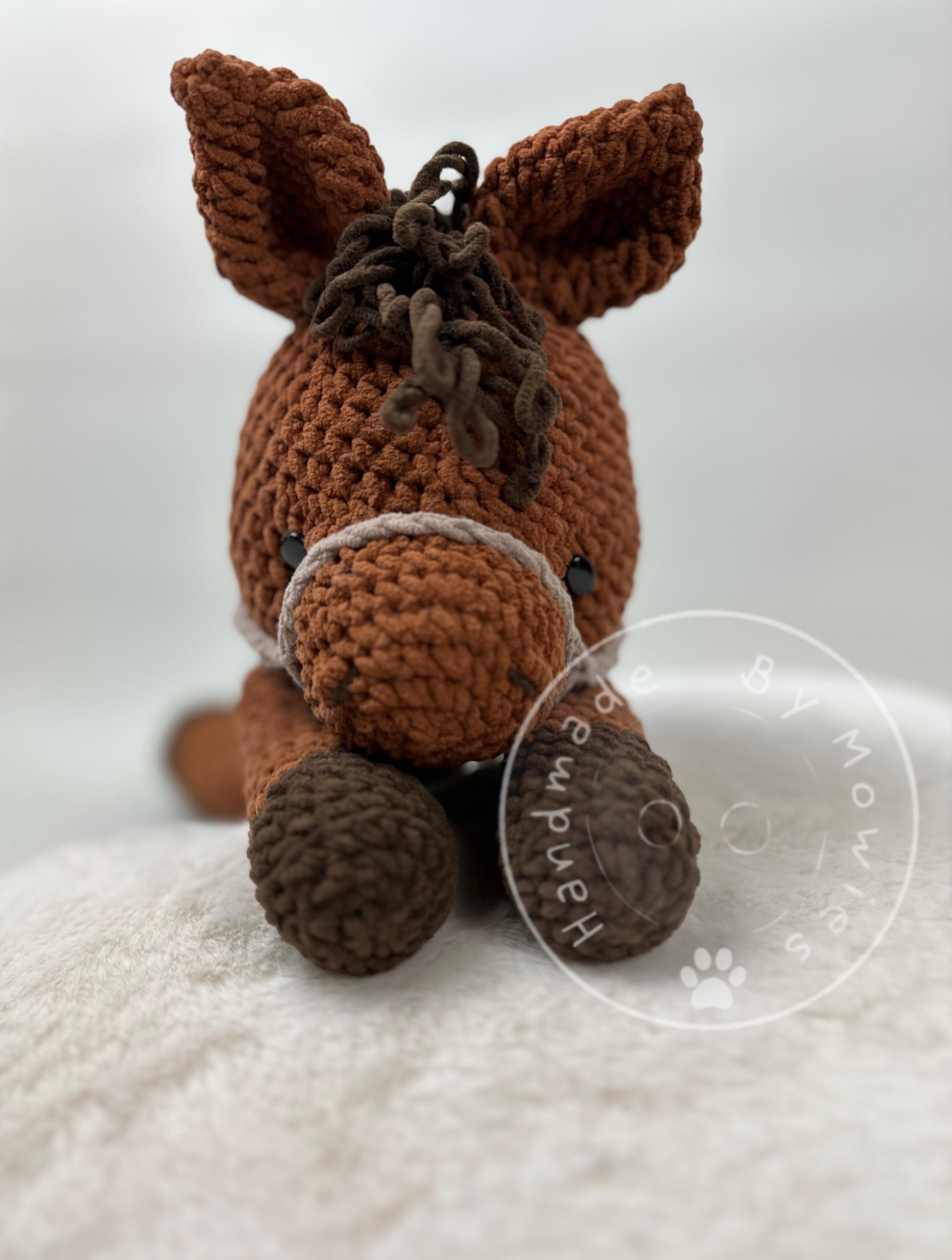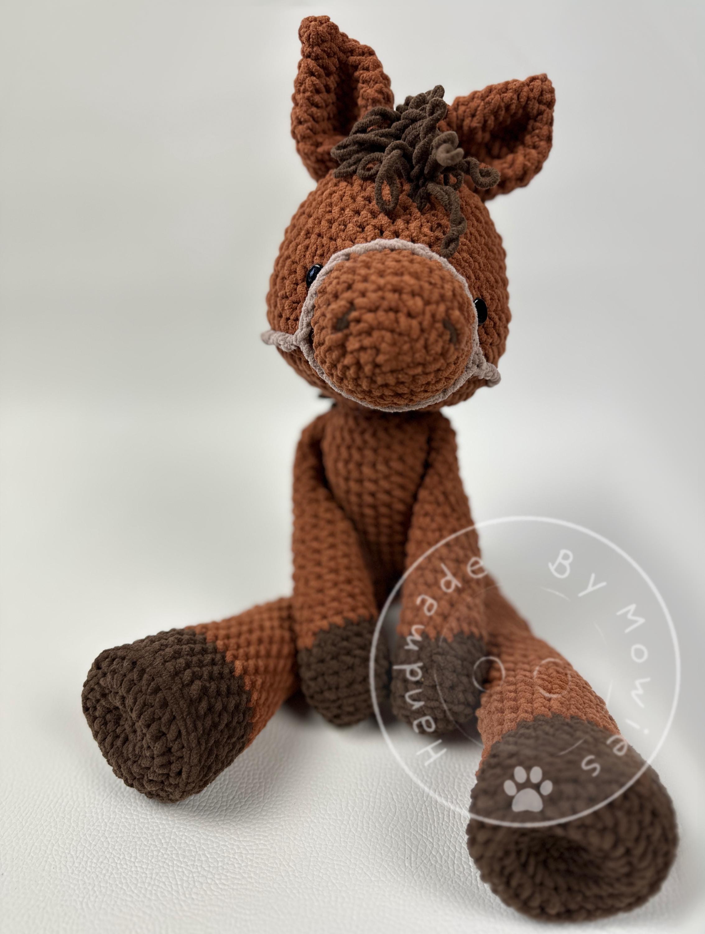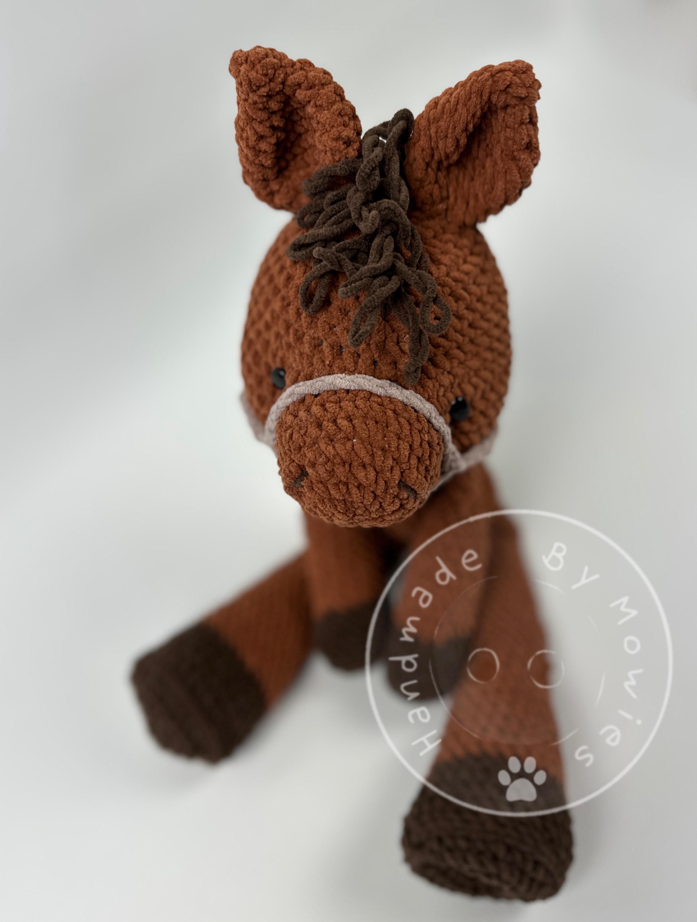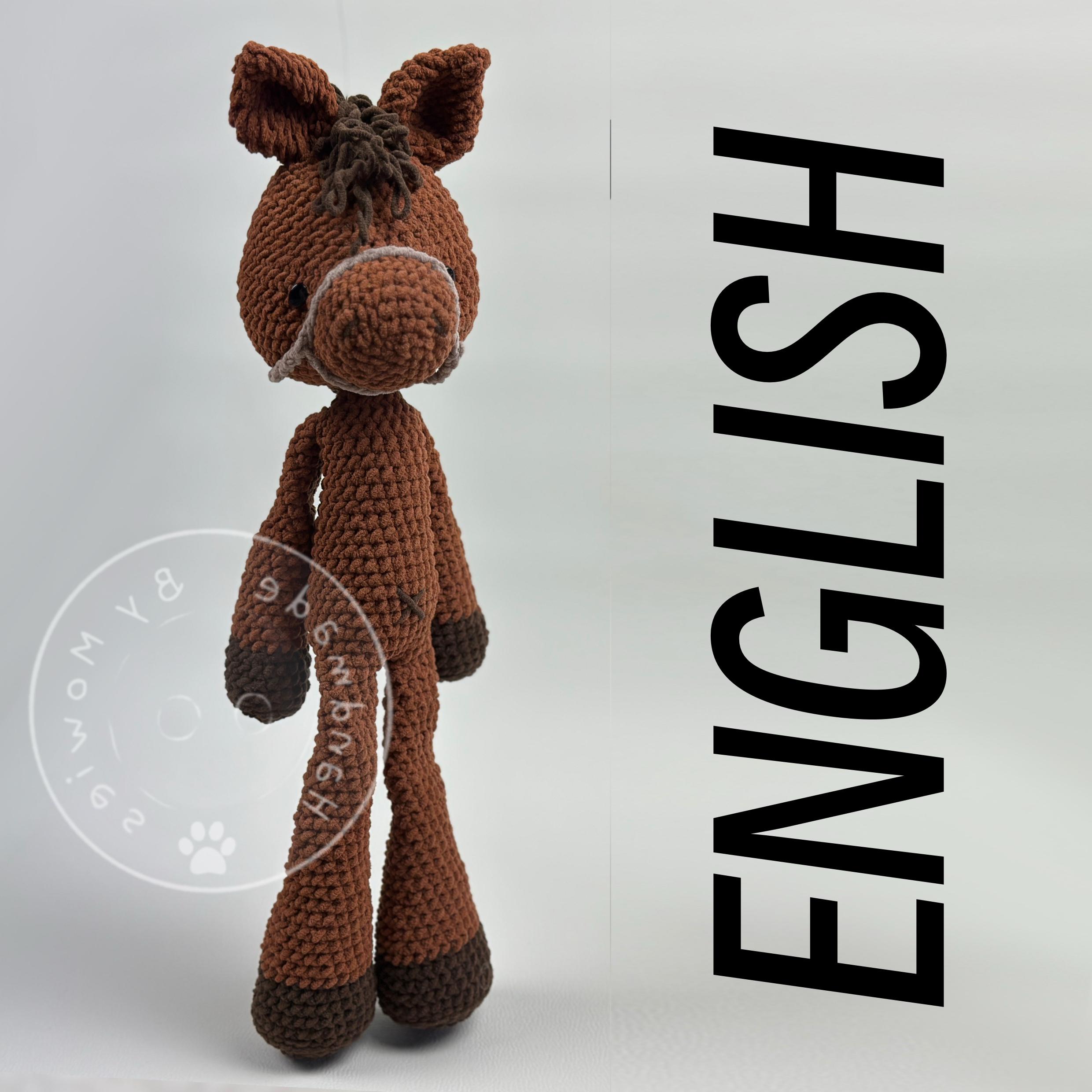 Happy Horse, English, PDF, pattern, cute horse, crochet pattern horse, amigurumi foal, cute farm animal, crocheted stuffed animal.