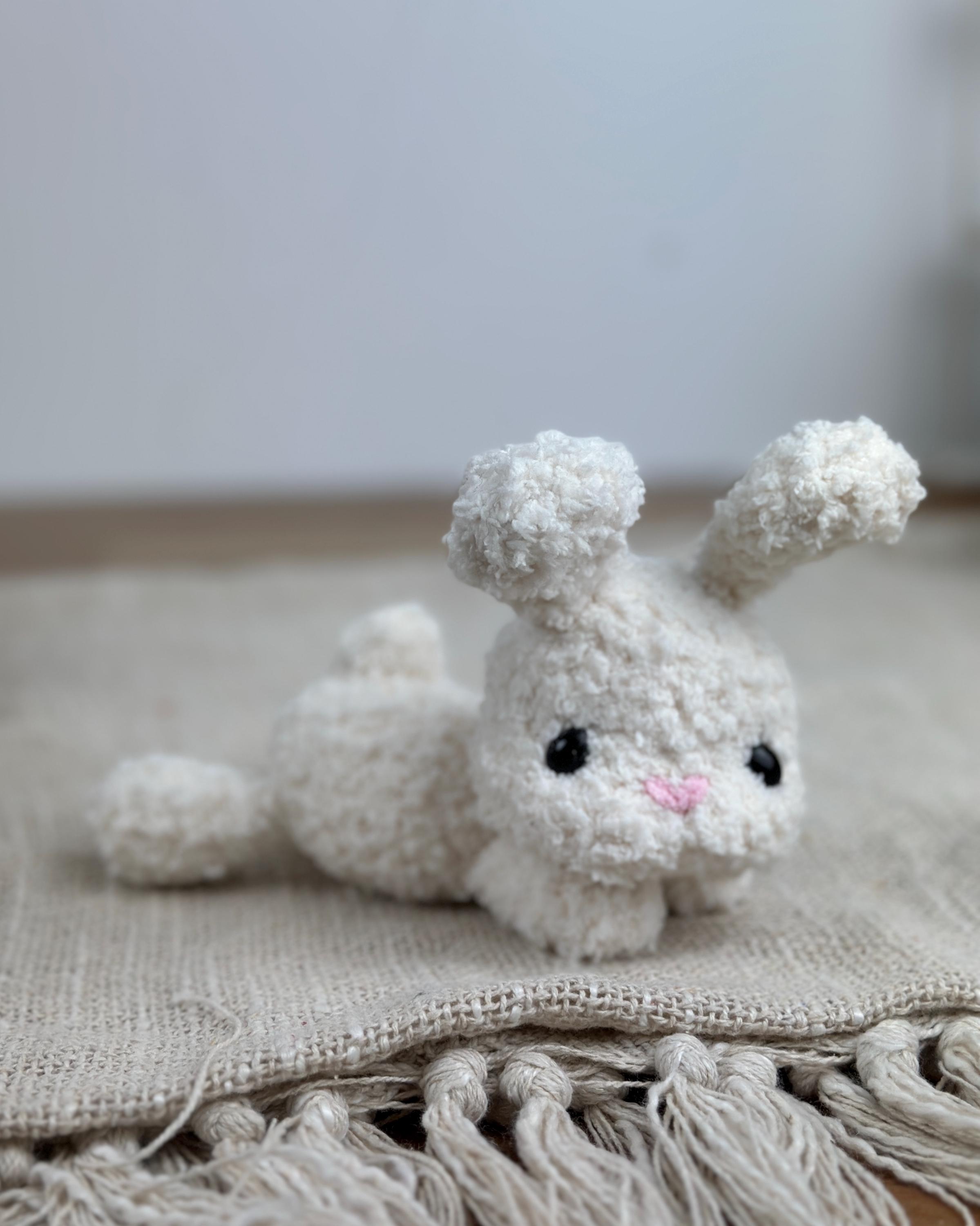 Sleeping Bunny Crochet Pattern • Soft Plush Sleepy Rabbit • Easy & Quick Low-Sew Amigurumi • Beginner-Friendly Chenille Toy PDF