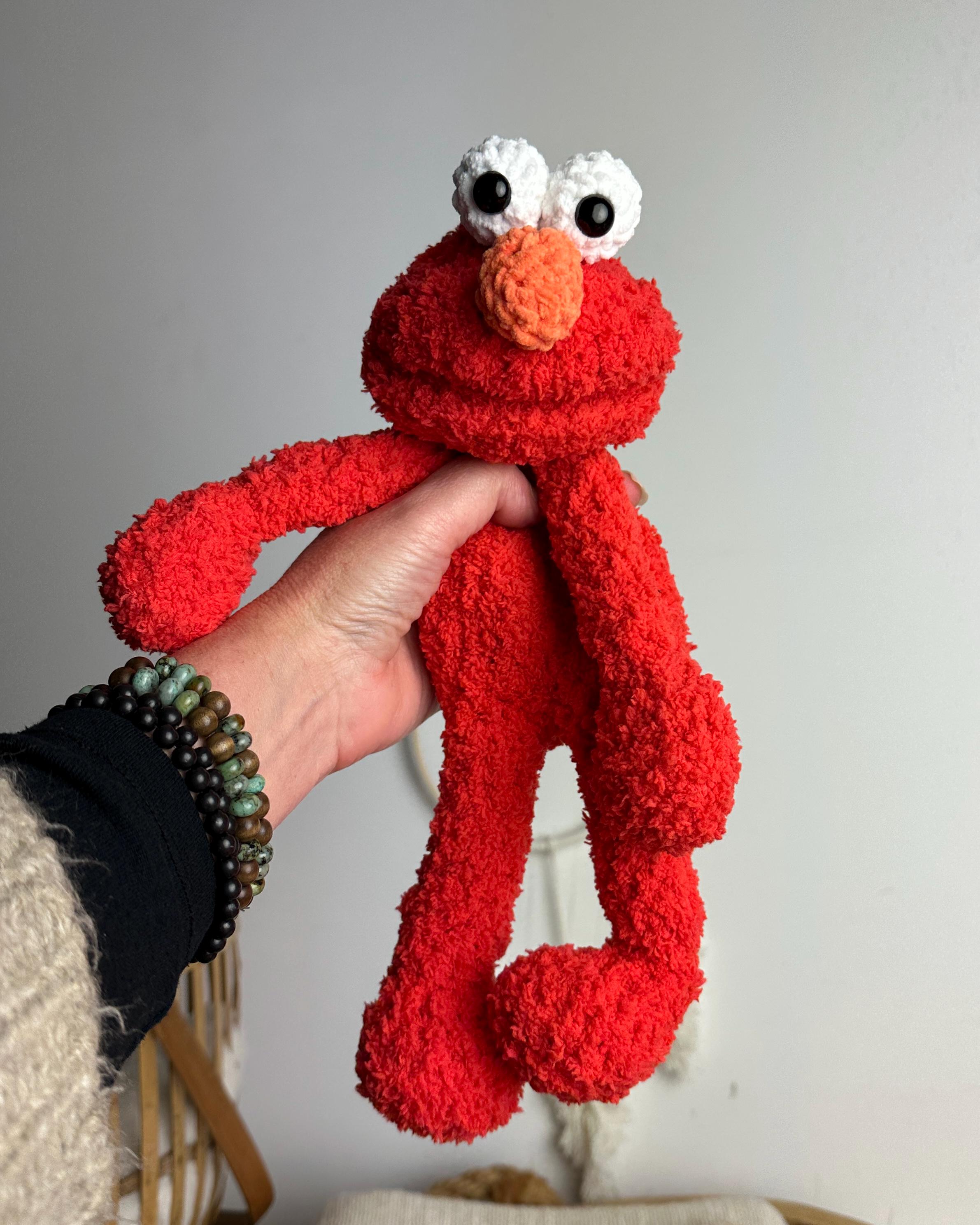 The Plushies in the photo (approx. 33 cm) is made with Yarn and Colors Furry and Chunky Chenille (40 g – approx. 72 m) and a 6.0 mm and a 4.5 mm crochet hook.
