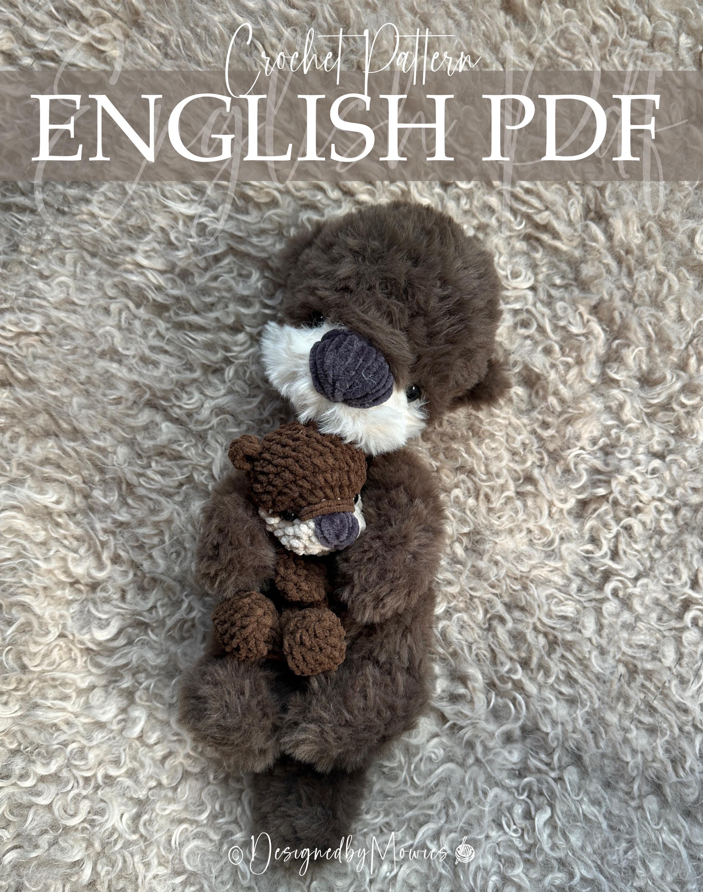 Otter Crochet Pattern PDF, Extra Soft Plush Otter with Baby, Fur Yarn Amigurumi, Chenille Baby Otter, Large Cuddly Toy, Beginner Friendly